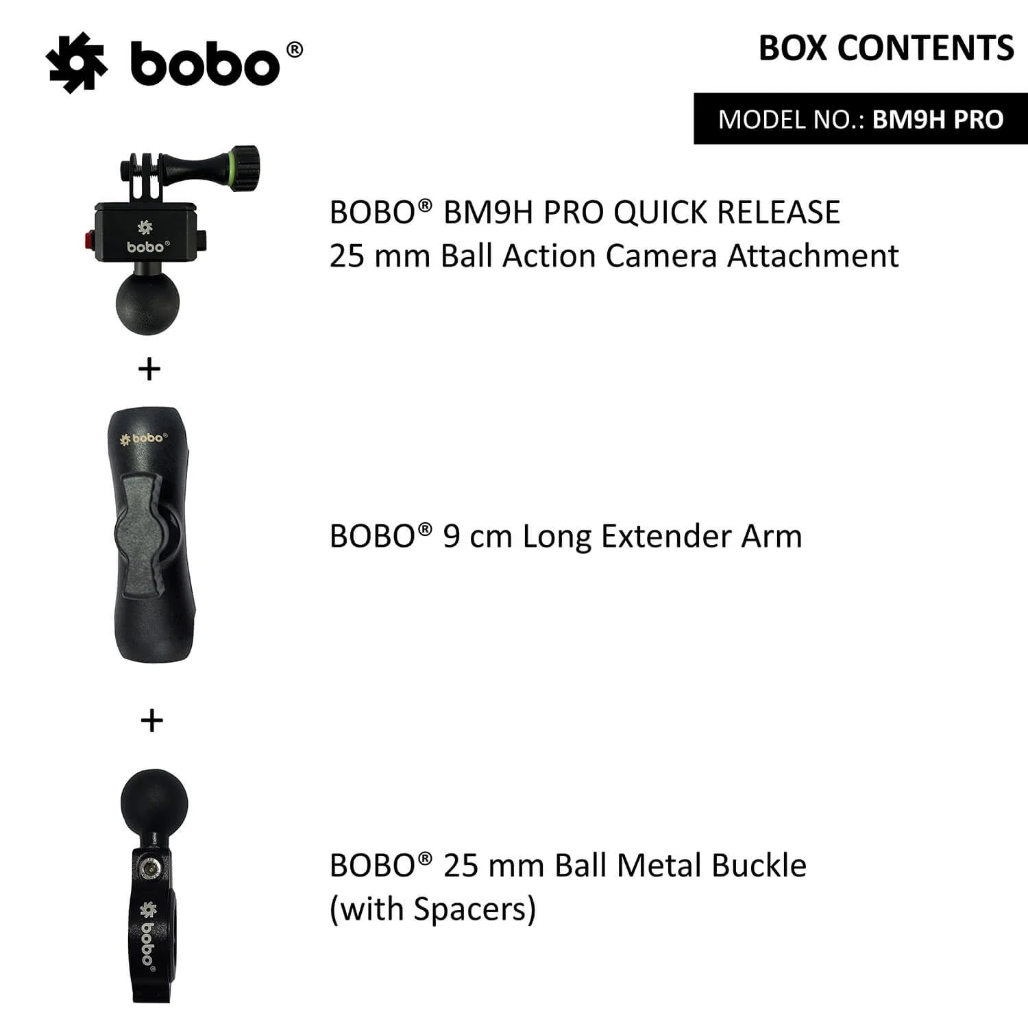 • BOBO BM9H ACTION CAMERA MOUNT - If you are looking for a secure and durable action camera bike mount, this is what you should get. It fits all action cameras of all major companies and you can easily change position because of the use of long extender arm. You can easily mount this on any handlebar.