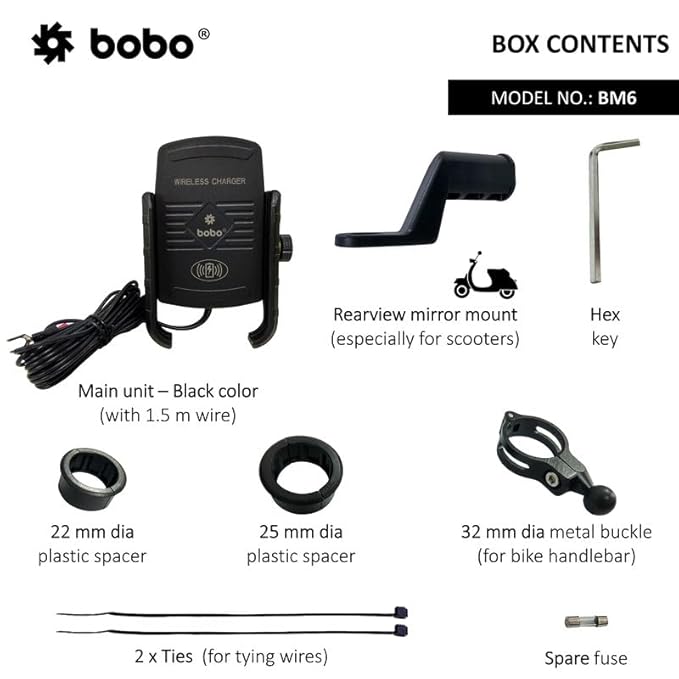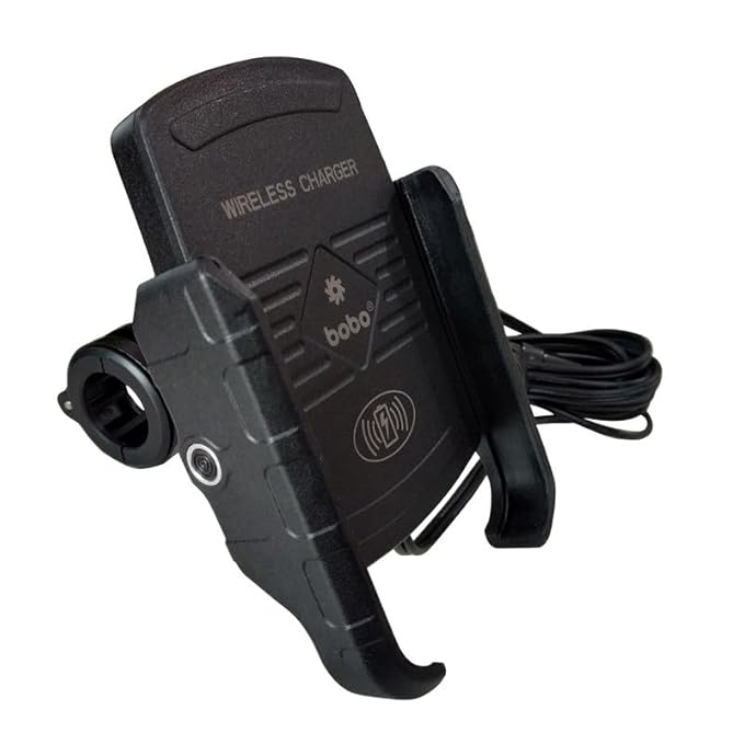 BOBO BM6 Jaw-Grip Waterproof Bike/Motorcycle/Scooter Mobile Phone Holder Mount with Fast 15W Wireless Charger, Ideal for Maps and GPS Navigation (Black)