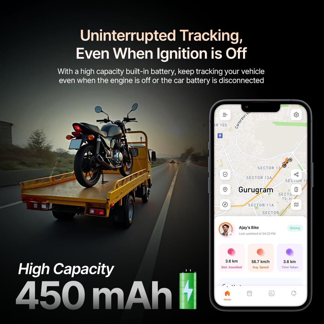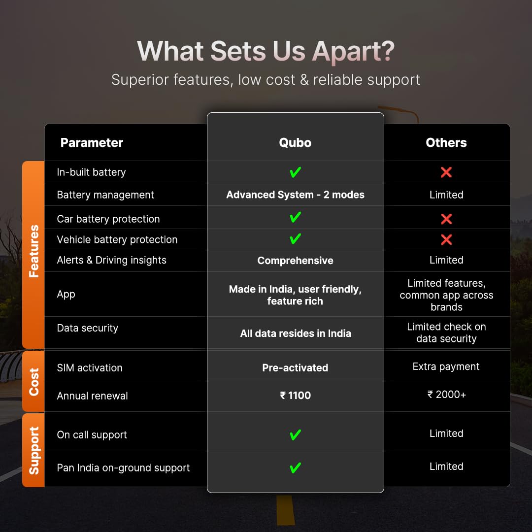 - 【Live GPS Tracking With Ride History】Track Real-Time Location Of Your Bike With Precision GPS—View Complete Ride History, Engine-Off Movement Logs, And Route Playback On Qubo Go App.