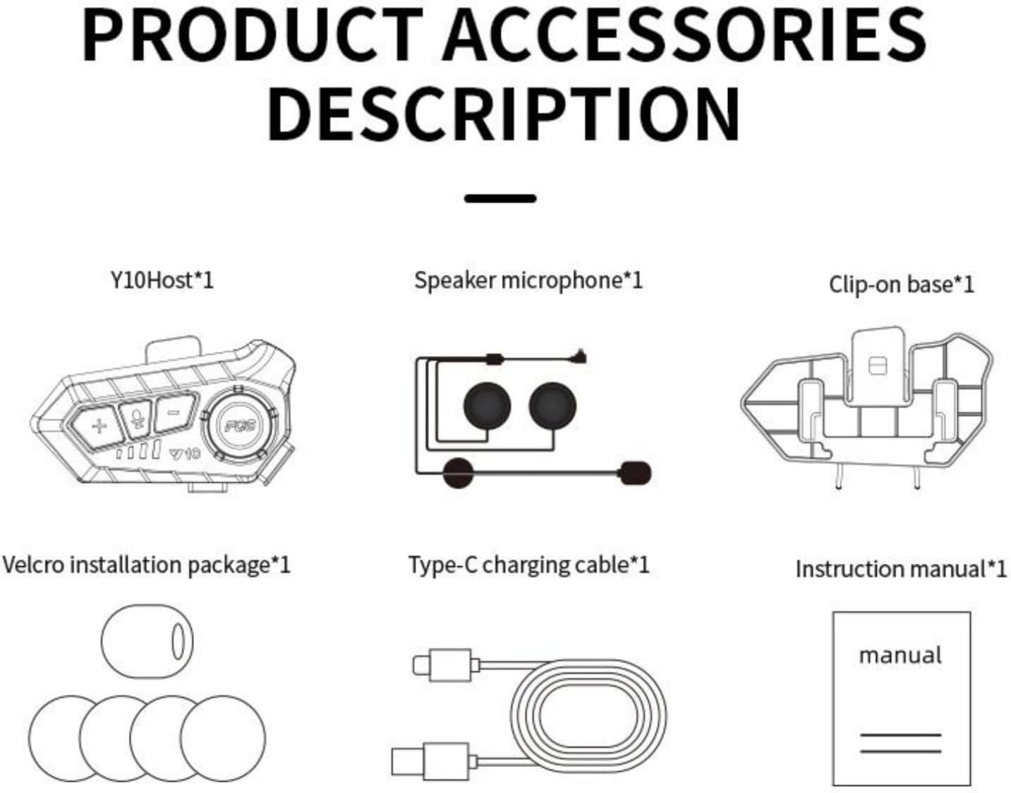Y10 Motorcycle Helmet Bluetooth Headset, Wireless Headphones 5.3 Waterproof IPX6 with Noise Cancelling for Single Person