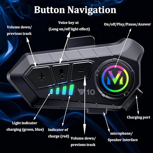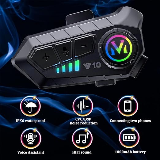 - 【Easy Installation for Different Helmets and RGB Light】:Equipped with microphone,clip base,stickers,offering flexibility between a boom microphone ideal for open-face or flip-face (convertible) helmets and a button microphone specifically designed for full-face helmets.Upgrade with lights,you can customize your helmet style,add fun riding.