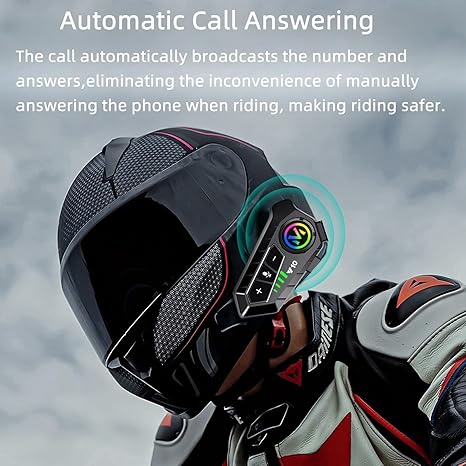 - 【IPX6 Waterproof and Easy to Use】:The helmet speakers use IPX6 waterproof technology that can handle all weather conditions.No fear of wind and rain.Just turn on the headset,long press the function key to enter the matching mode (at this time, the red and blue light of the machine flashes), and select the motorcycle headset model matching your mobile phone to use.